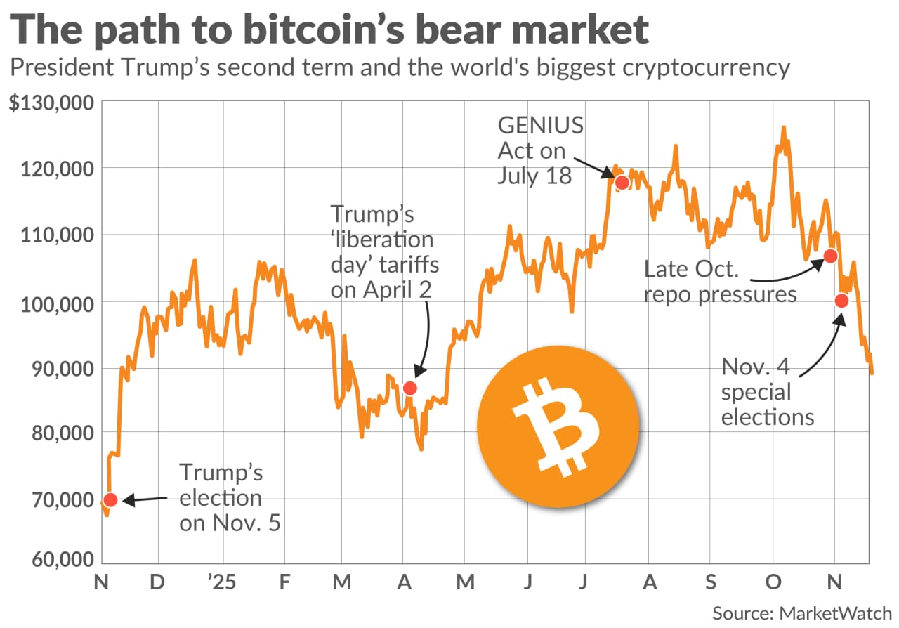 Bitcoin’s bear market is dragging the crypto below $90,000. Follow its price since President Trump’s election.